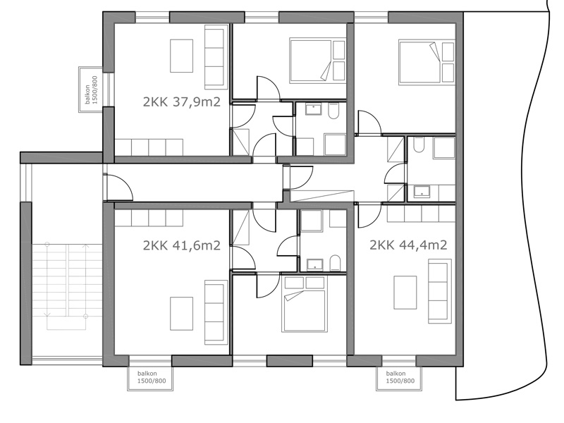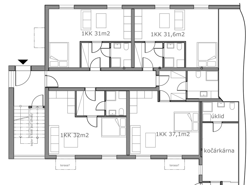Návrh ubytovacího zařízení v prostorách stávajícího skladovacího dvoupodlažního objektu.