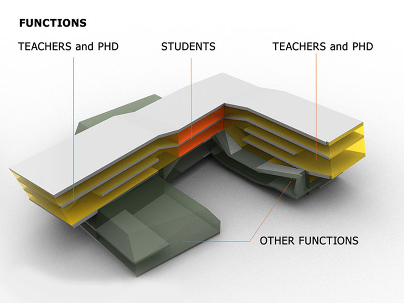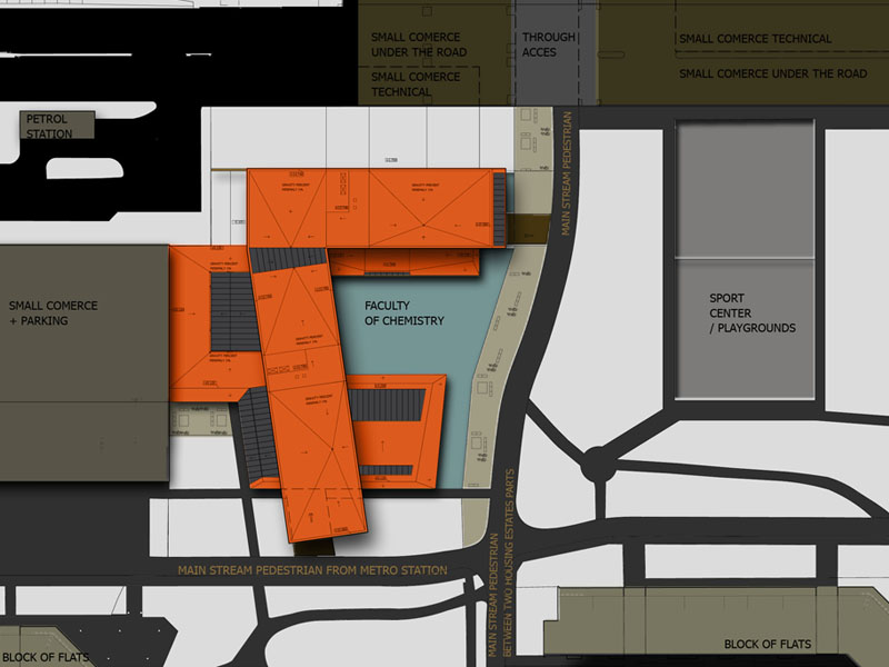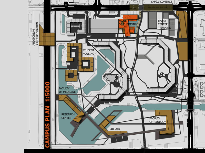 Plán na výstavbu kampusu přírodních věd jako součást řešení sociálních konfliktů na periferii Amsterodamu, Bijlmermeer. Urbanistický plán rozmístění objektů kampusu. Pozemek fakulty 8300m2 , kapacita 420 studentů. Součástí školy je dále knihovna a prostory pro studenty propojené se zelení a vodní plochou. Koncept objektu i vnitřního uspořádání je inspirován šroubovicí DNA, vytváří průhledy zajištující vizuelní otevřenost jinak separovaných provozů.
