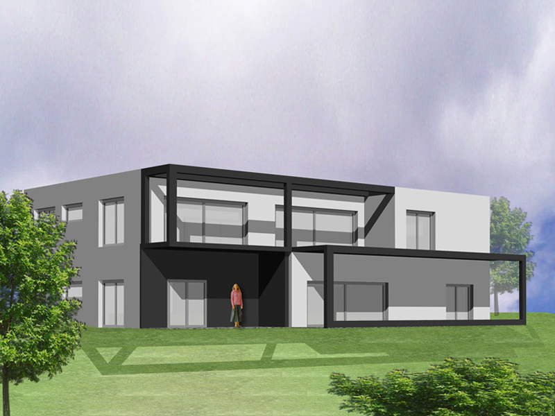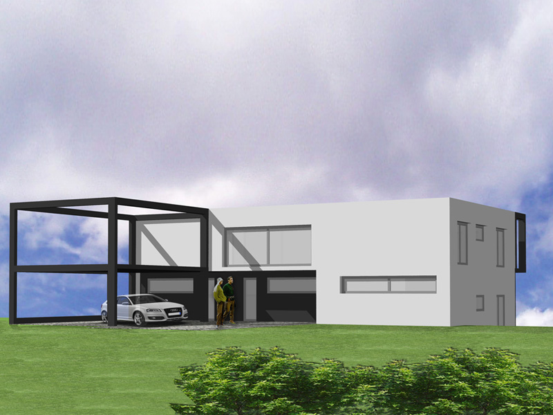 Novostavba trojdomků, developerský projekt. Velikost obytné jednotky 100m2. V 1NP se nachází obývací hala, sklad s dílnou a sociální zázemí. Ve 2np se nacházejí ložnice s terasami pro podtržení výhledu. Parkování je zajištěno pod společným přístřeškem u zastřešeného vstupu do jednotlivých jednotek. Dále je stavební pozemek dělen na tři zahrady s ohledem na zachování maximálného soukromí.