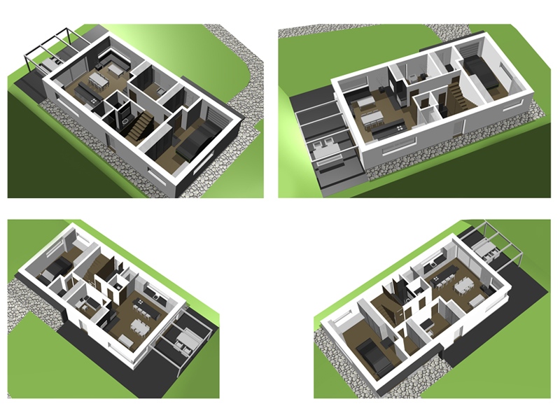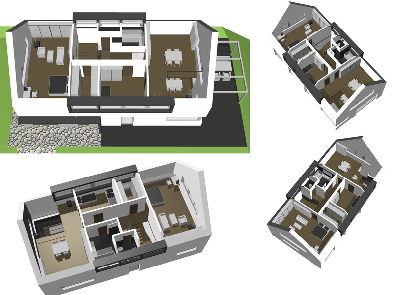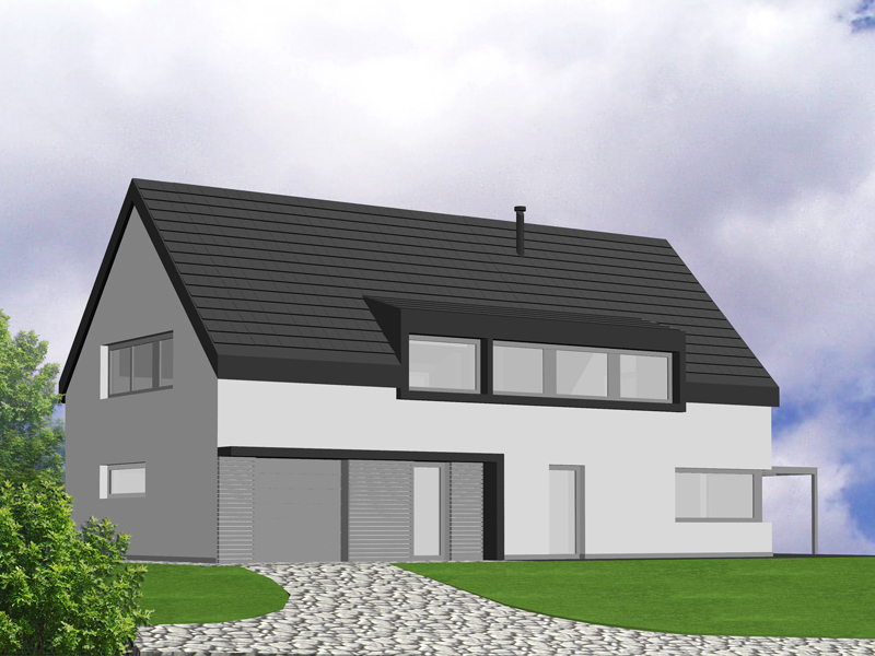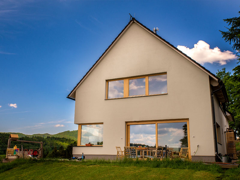 Novostavba rodinného domu 240m2. Požadavkem klienta bylo vytvoření RD s moderním zevnějškem za využití tradičních materiálů. Tento požadavek bylo třeba skloubit s parametry danými chráněnou krajinnou oblastí. Ve spodním podlaží se nachází obývací hala, bezbariérová ložnice se sociálním zázemím a gařáž s dílnou. V horním podlaží je manželská ložnice. Další ložnice pro děti jsou nyní rozděleny na místnost na spaní a hernu s průhledem do obývací haly. Do budoucna se předpokládá rozdělení herny na pracovnu s průhledem a samostatnou ložnici.