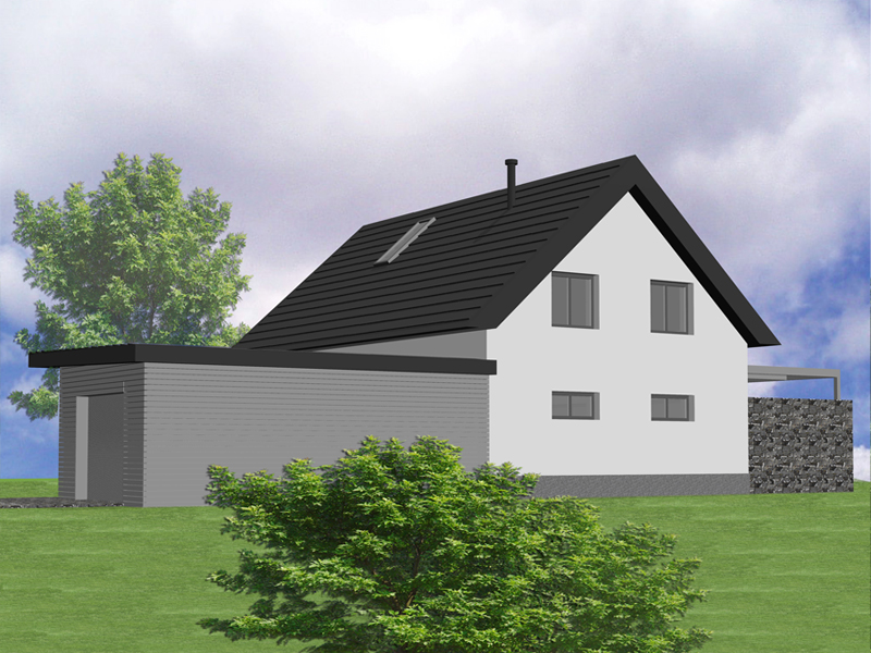 Novostavba rodinného domu v chráněné krajinné oblasti 140m2. Požadavkem klienta bylo vytvoření RD, na základě parametrů pro umístění velkoplošných akvárií. Vzhledem k nižšímu rozpočtu pro realizaci byla garáž umístěna jako jednopodlažní. V samotném objektu RD je v 1NP umístěna obývací hala s akváriemi a technologickou místností. Dále malý pokoj pro hosty a sociální zázemí. V horním podlaží se nacházejí ložnice. Objekt je situován dle možnosti výhledů a světových stran s parametrem zachování úplného soukromí.
