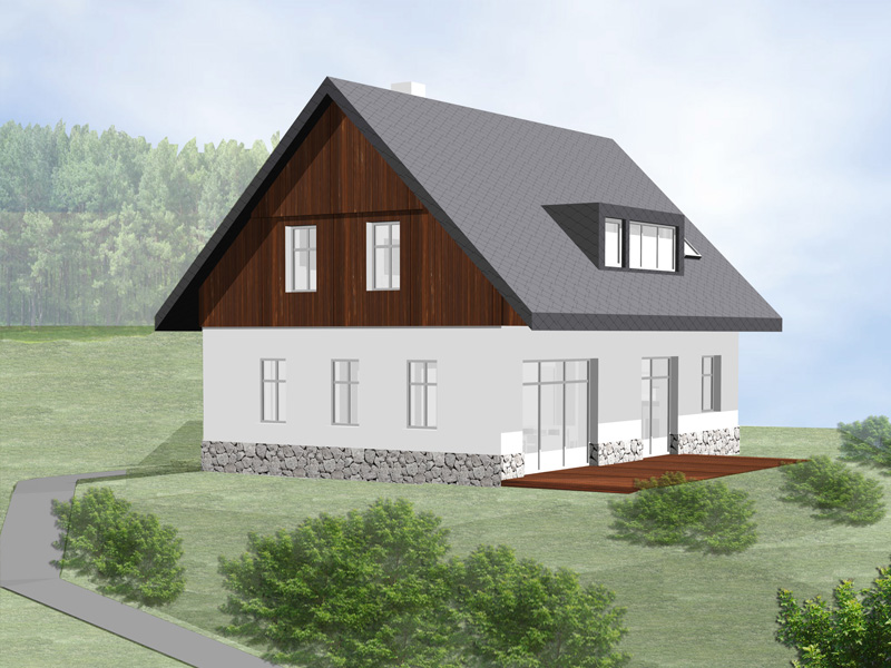 Rodinný dům je navržen v duchu původních objektů Jizerských hor. Veškeré parametry výstavby chráněné krajinné oblasti byly nejen dodrženy, ale současně podpořeny dřevěným obkladem na výškové úrovni podkroví a členěním oken, které byly opsány od historických objektů nacházejících se v této lokalitě.