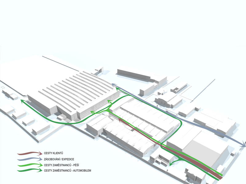 Koncept rekonstrukce průmyslového areálu v Praze Modřanech společnost Modřanská Potrubní a.s. Generel území s návrhem využití budov.