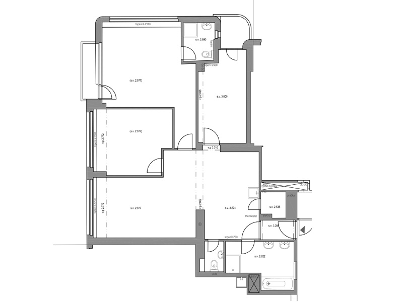 Přestavba bytové jednotky na 3 zubní ordinace se zázemím včetně zajištění návrhu technologií.